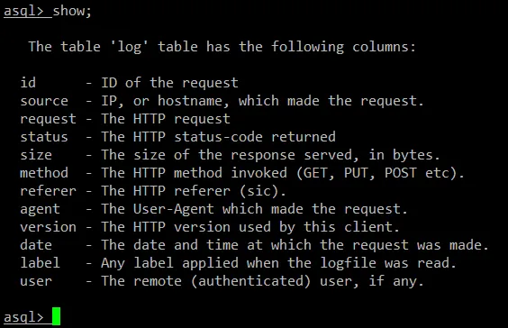 asql > load <apache-access-logs 的路径>