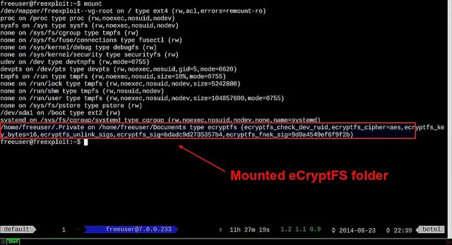 - eCryptFS:一个POSIX兼容的加密文件系统,eCryptFS工作方式和EncFS相同,所以你必须挂载它。