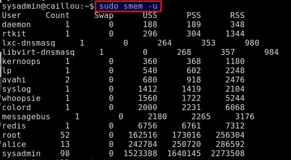 如有你想得到整个系统中所有用户的内存使用情况,就需要使用root权限来运行smem。