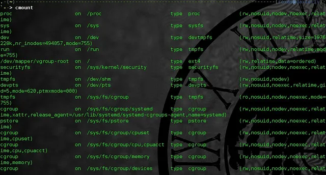 alias cmount="mount | column -t"
