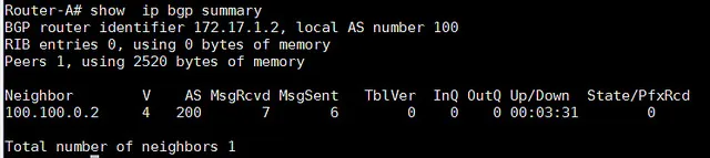 Router-B(config-router)# neighbor 100.100.0.1 remote-as 100