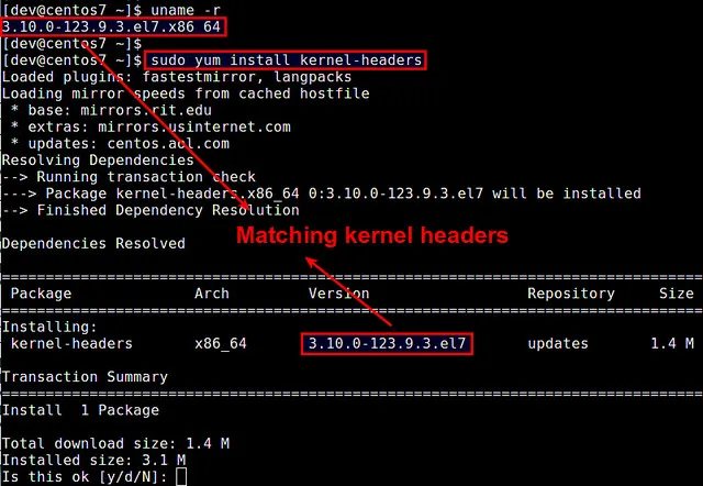 $ sudo yum install kernel-headers
