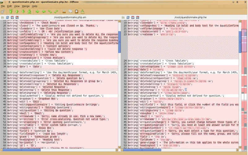 Diffuse是个开源的图形化工具,可用于合并和比较文本文件。Diffuse能够比较任意数量的文件,并排显示,并提供手动行匹配调整,能直接编辑文件。Diffuse还能从bazaar、CVS、darcs, git, mercurial, monotone, Subversion和GNU RCS 库中获取版本用于比较及合并。