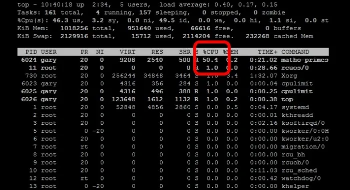 从上面的例子可以看出 matho-primes 只使用了50%的 cpu 资源,剩余的 cpu 时间都在 idle。