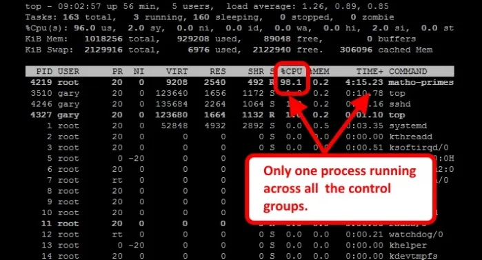 现在,我们再在 cpulimited 控制组中增加一个 matho-primes 进程: