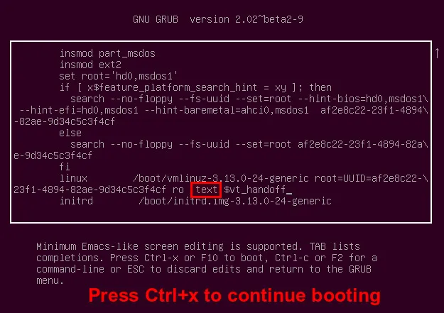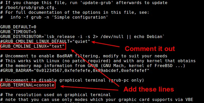 GRUB_CMDLINE_LINUX="text"