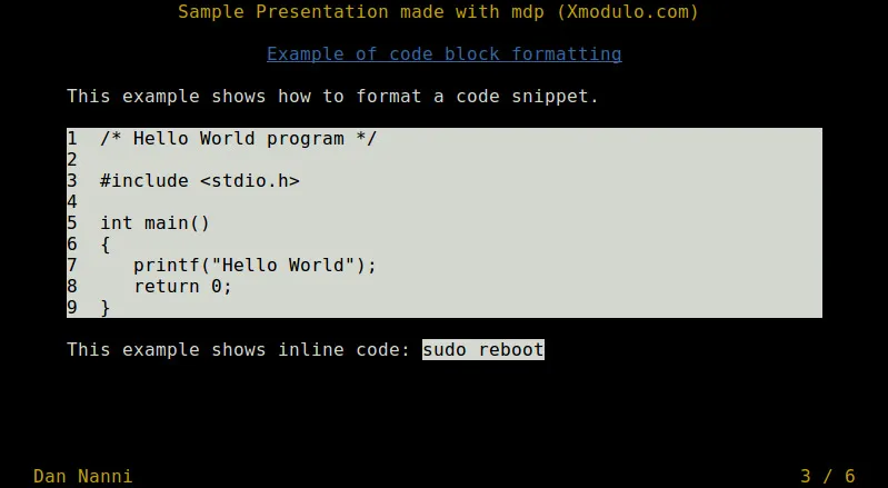 %title: Sample Presentation made with mdp (Xmodulo.com)