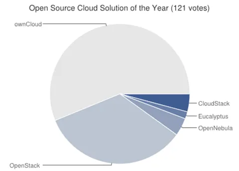 而下图则是网站票选出的得出的最佳云项目。值得注意的是, LinuxQuestions的用户群体给予了ownCloud项目极高的评价。 你一定得亲自去看看调查结果的详情, 也看看 Susan 关于各项目“赢家”的总结, 还有一堆精美的图表。