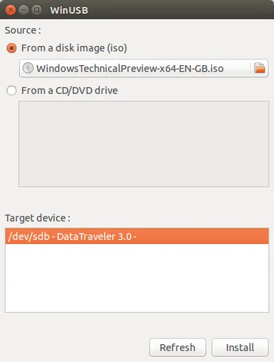 WinUSB是一款即简单又有用的工具,可以让你从 Windows ISO 镜像或者 DVD 中创建 USB 安装盘(LCTT译注:支持将 Windows Vista/7/8/PE 制作成 USB 安装盘)。它支持 GUI 和命令行,你可以根据你的喜好决定使用哪种。