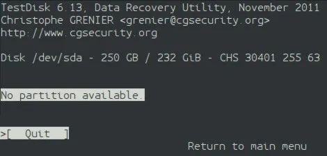 TestDisk 是一个运行在 Linux、 *BSD、 SunOS、 Mac OS X、 DOS 和 Windows 等操作系统下的开源的自由软件。 TestDisk 可以从下面的链接中找到 :http://www.cgsecurity.org/wiki/TestDisk。TestDisk 也可以通过键入 sudo apt-get install testdisk 来安装。TestDisk 有着许多的功能,但这篇文章将只关注恢复文件这个功能。