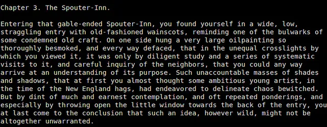 如果你只是想快速简单的查看EPUB文件的内容,不关心任何图形化界面功能的话,最好使用命令行模式打开EPUB。epub 是一个用Python编写的阅读器,可以在终端环境读取EPUB文件的内容。软件可以在章节、页面间切换,没有其他的功能。这是最简洁的EPUB阅读器了。