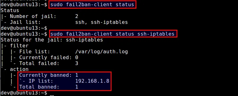$ sudo systemctl restart fail2ban