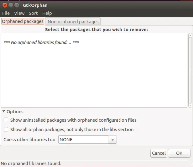 GtkOrphan (一个针对 debian 系发行版本的 Perl/Gtk2 应用) 是一个分析用户安装过程状态并查找孤立库文件的图形化工具,它为 deborphan 提供了一个 GUI 前端,并具备移除软件包的功能。