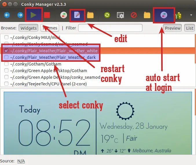 你可以阅读这篇关于如何在 Linux 中使用 Conky Manager 的文章。