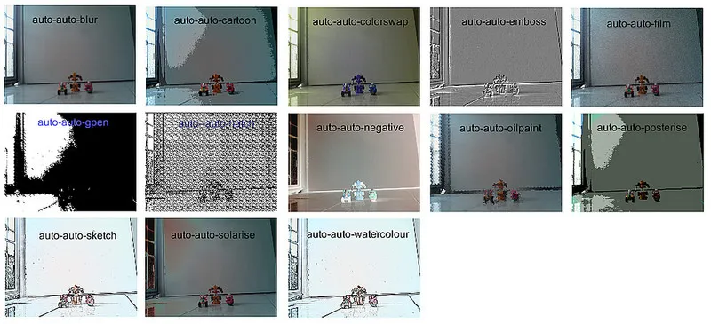 list_ifx=['blur','cartoon','colourswap','emboss','film','gpen','hatch','negative','oilpaint','posterise','sketch','solarise','watercolour']