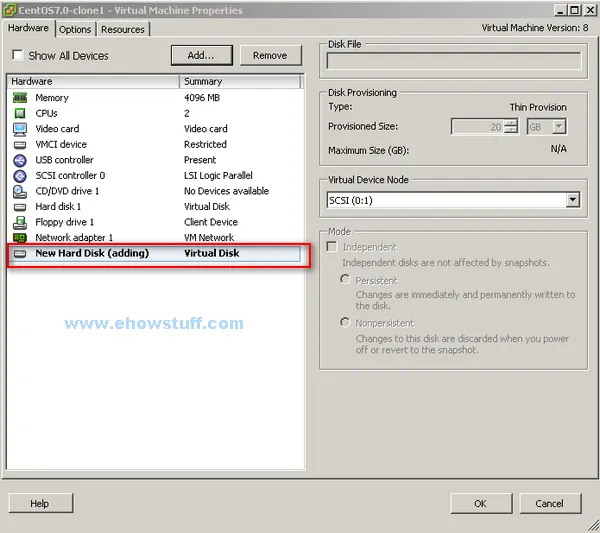 - 在ESXi或者vCenter中添加一块新的20G硬盘: