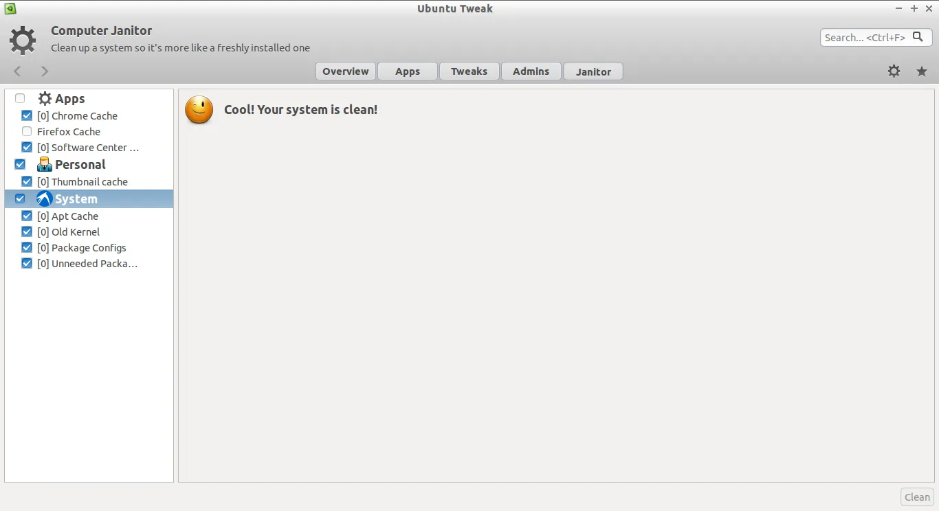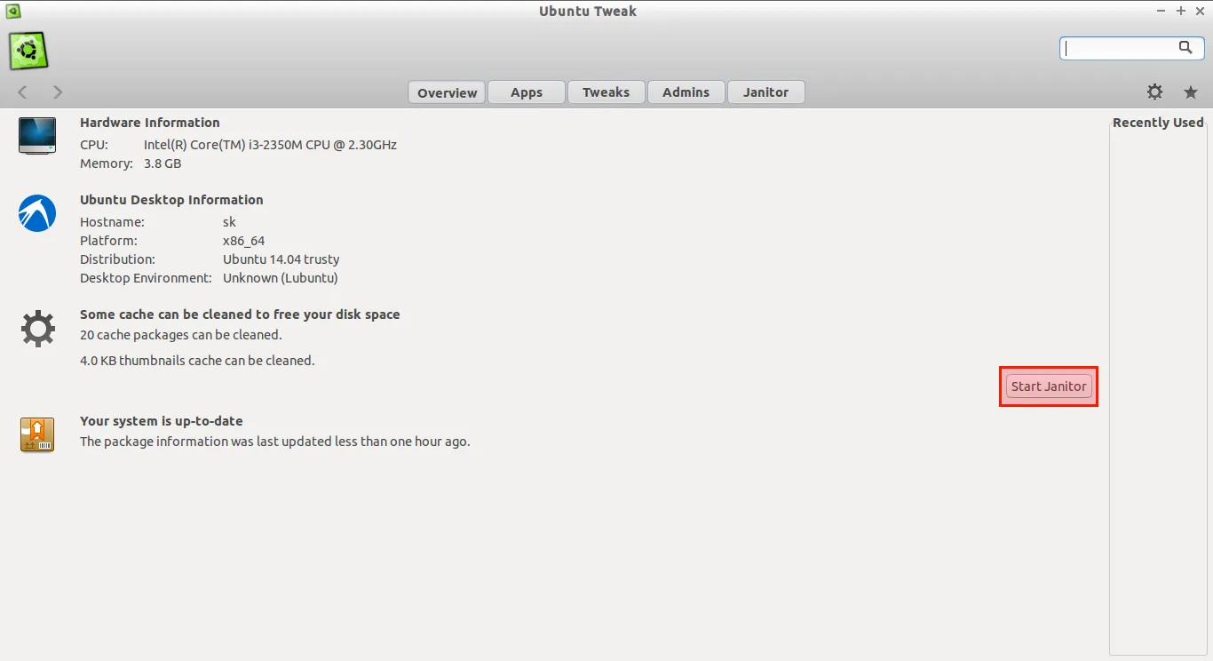 要删除不需要的垃圾文件,打开Ubuntu Tweak,点击 Janitor 选项。