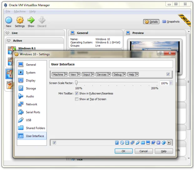 甲骨文公司提醒由于这是个测试版软件,需要谨慎对待。当然,主界面和客户机系统界面的某个角落打着红黑相间的测试警告标志。但之前VirtualBox发行版(4.3.26)上创建的Windows 10虚拟机启动和运行都没问题,5.0版本中添加的VirtualBox客户机功能–更好的视频支持,双向复制和粘贴,以及其它功能–在安装的时候也没有问题。(从4.3.18版本就改进了对 Windows 10的支持)。
