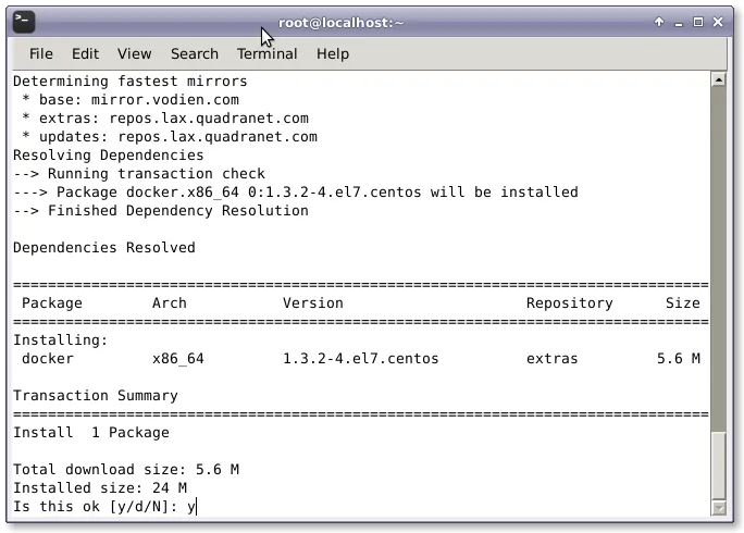 在开始前,我们首先得确保在Linux主机中已经安装了Docker。这里,我运行的是CentOS 7 主机,我们将运行yum管理器和下面的命令来安装Docker。