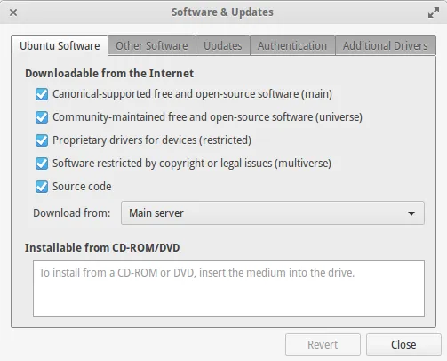 上面描述的方法已经修复了这个apt-get update cannot be used to add new CD-ROMs错误。但是这个方法对我无效,因为cdrom的选项这时是灰色的,因为我使用的live版本。