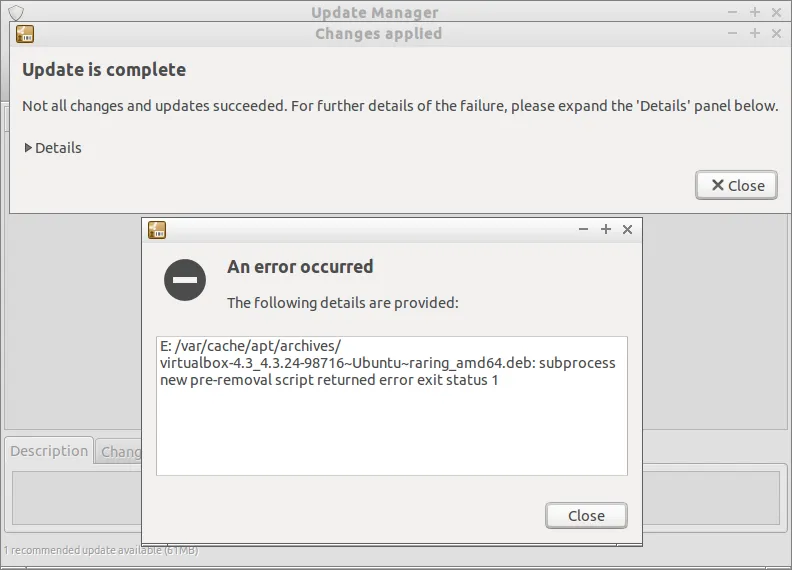 今天,我在更新VirtualBox新版本的时候遇到了一个问题。