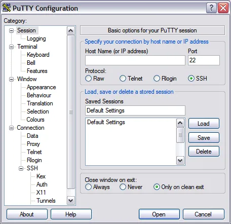 Putty 非常易于安装和使用,通常大部分的配置选项你都不需要修改。你只需要输入少量基本的参数,就可以开始很简单地建立连接会话。点此下载 Putty。