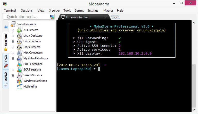 MobaXterm 提供了所有重要的远程网络工具 (如SSH、 X11、 RDP、 VNC、 FTP、 MOSH 等等),以及 Windows 桌面上的 Unix 命令(bash、 ls、 cat、sed、 grep、 awk、 rsync等等),而这些都是由一个开箱即用的单一的便携程序所提供。MobaXterm 对个人使用免费,你可以在这里下载 MobaXterm。