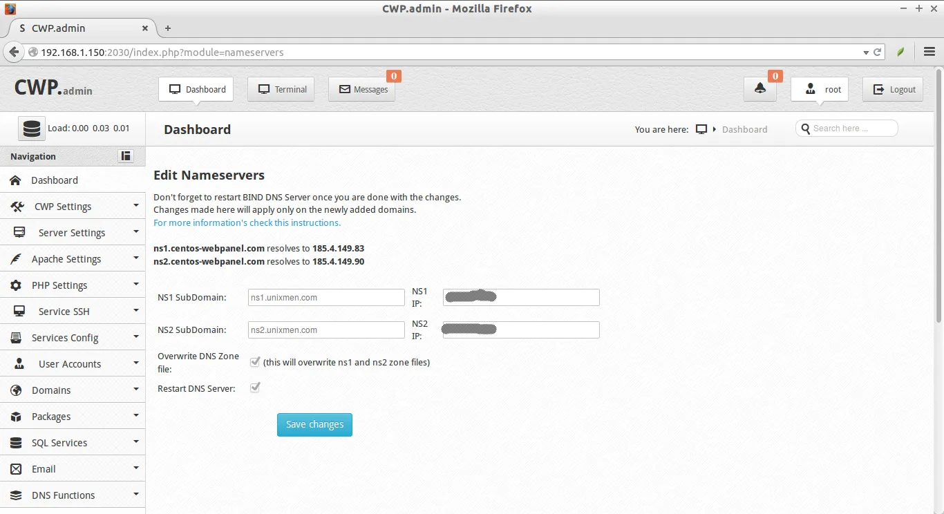 在你的主机上托管网站,这是非常重要的一步。为了建立共享IP,进入CWP Setting -> Edit settings。