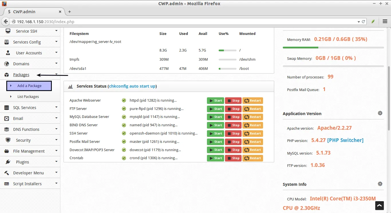 CWP有很多的特性和免费的服务。如我前面提到的一样,CWP会在你的服务器上自动安装全套的LAMP服务(apache,php,phpmyadmin,webmail,mailserver等等)。