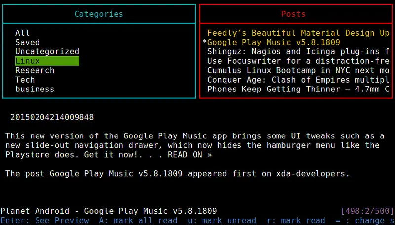 除了使用我非常喜欢的Feedly浏览器扩展和手机上的Feedly程序,这里还有一种途径来获取Feedly:Linux命令行。没错,你可以用命令行来获取Feedly上的新闻概要。听起来非常傻?但是对于那些在服务器上工作的系统管理员来说,这是非常有用的。