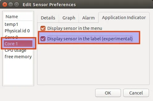 Psensor最新的版本同样提供了Ubuntu中的指示小程序,这样使得在Ubuntu中监控温度变得更加容易。你可以选择在面板的右上角显示温度。它还会在温度上过阈值后通知。