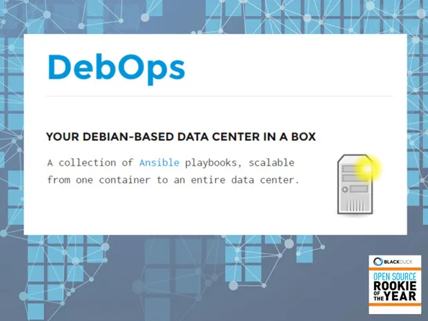 DebOps始创于波兰的一个不起眼大学校园里,他们运营自己的数据中心,一切工作都采用手工配置。有时系统崩溃而导致几天的宕机,这时Delmanowski意识到一个配置管理系统是很有必要的。以Debian作为基础开始,DebOps是一组配置一整个数据基础设施的Ansible方案。此项目已经在许多不同的工作环境下实现,而创始者们则打算继续支持和改进这个项目。