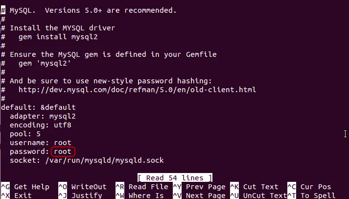 nano config/database.yml