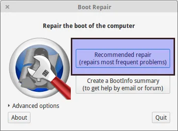 其实操作非常简单直接,你仅需按照Boot Repair工具提供的说明操作即可。首先,点击Boot Repair中的Recommended repair选项。