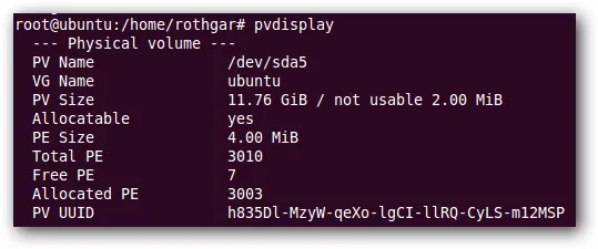 你首先需要做的事情是检查你的 LVM 设置。s 和 display 命令可以和物理卷(pv)、卷组(vg)以及逻辑卷(lv)一起使用,是一个找出当前设置的好起点。