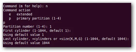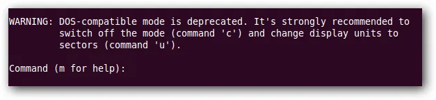 这会使你进入到一个特殊的 fdisk 提示符中。