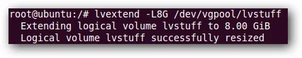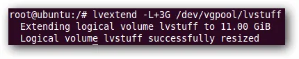 当这个命令工作的时候你会发现它实际上重新设置逻辑卷大小为 8GB 而不是我们期望的将 8GB 添加到已存在的卷上。要添加剩余的可用 3GB 你需要用下面的命令。