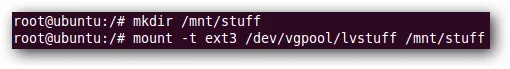 mount -t ext3 /dev/vgpool/lvstuff /mnt/stuff