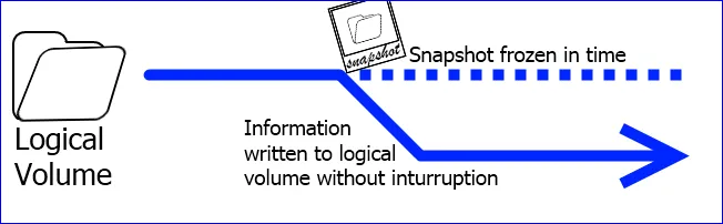 LVM 获取快照的时候,会有一张和逻辑卷完全相同的“照片”,该“照片”可以用于在不同的硬盘上进行备份。生成一个备份的时候,任何需要添加到逻辑卷的新信息会如往常一样写入磁盘,但会跟踪更改使得原始快照永远不会损毁。
