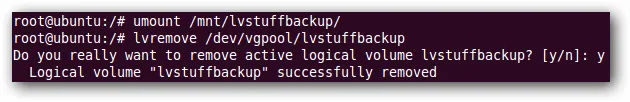 要删除一个逻辑卷,你首先需要确保卷已经卸载,然后你可以用 lvremove 命令删除它。逻辑卷删除后你可以移除卷组,卷组删除后你可以删除物理卷。