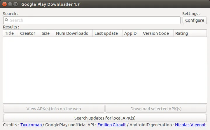 一旦你安装好 GooglePlayDownloader 后,你就可以像下面那样从 Google Play 商店下载 APK 文件。(LCTT 译注:显然你需要让你的 Linux 能爬梯子)