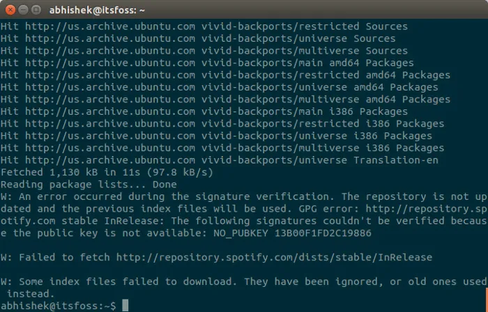 在我这里,我看到了有名的GPG error: The following could not be verified错误。很明显,在Ubuntu 15.04中安装声破天有点问题。