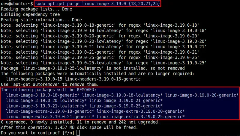 $ sudo apt-get purge linux-headers-3.19.0-{18,20,21,25}