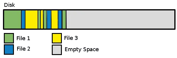 文件系统会按块更新文件,如果这些块没有连成一整块而是分布在磁盘的各个角落中时,就会形成磁盘碎片。这对于 FAT 和 FAT32 文件系统而言是这样的。在 NTFS 中这种情况有所减轻,但在 Linux(extX)中却几乎不会发生。下面是原因: