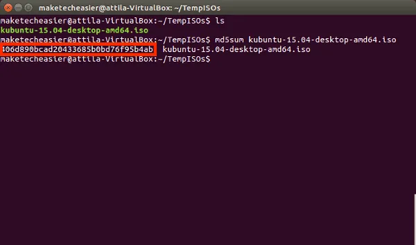 这个例子的文件 kubuntu-15.04-desktop-amd64.iso 放在位于 /dev/sda1 的 /home/maketecheasier/TempISOs/ 上。
