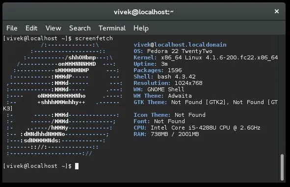 图四:在 Fedora 22 用 dnf 安装 screenfetch
