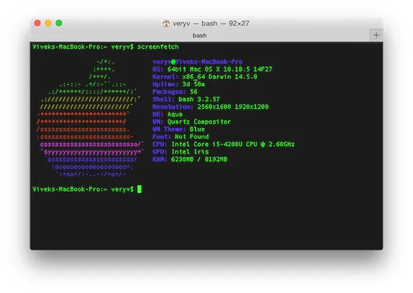 screenFetch 是一个能够在截屏中显示系统/主题信息的命令行脚本。它可以在 Linux,OS X,FreeBSD 以及其它的许多类Unix系统上使用。来自 man 手册的说明: