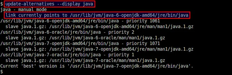 $ sudo update-alternatives --display java