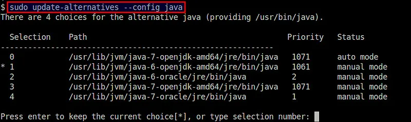 $ sudo update-alternatives --config java