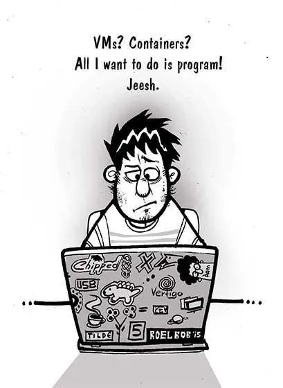 虚拟机还有另一个缺陷。让它们跑起来需要很长时间。如果你处于基础设施需要快速增长的情形,即使增加虚拟机是自动的,你仍然会发现你的很多时间都浪费在等待机器上线。